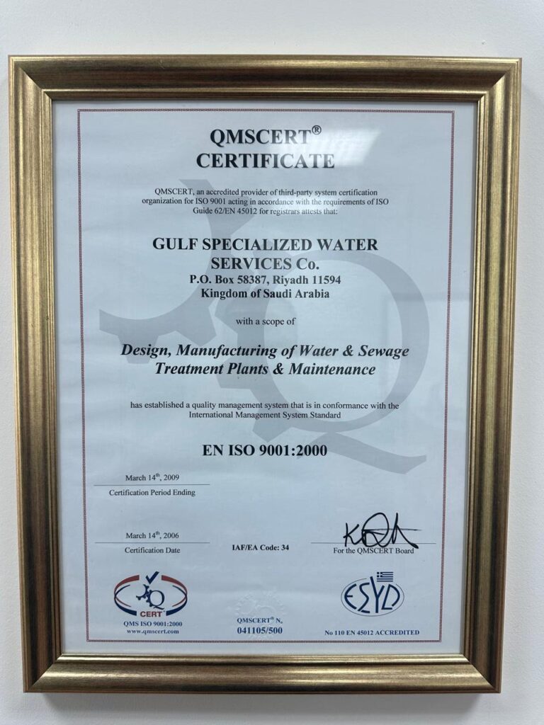 Gulf Specialized Water Services Co. (GSWSCO) has been a trusted leader in the water and wastewater treatment industry since 1991, With more than 30 years of industry experience, we specialize in the design, supply, installation, and commissioning of turnkey water and wastewater treatment projects. Additionally, we offer comprehensive operational and maintenance (O&M) services, as well as trade a wide range of chemicals and equipment. Our commitment to excellence ensures the delivery of innovative, high-quality solutions across all aspects of our operations.